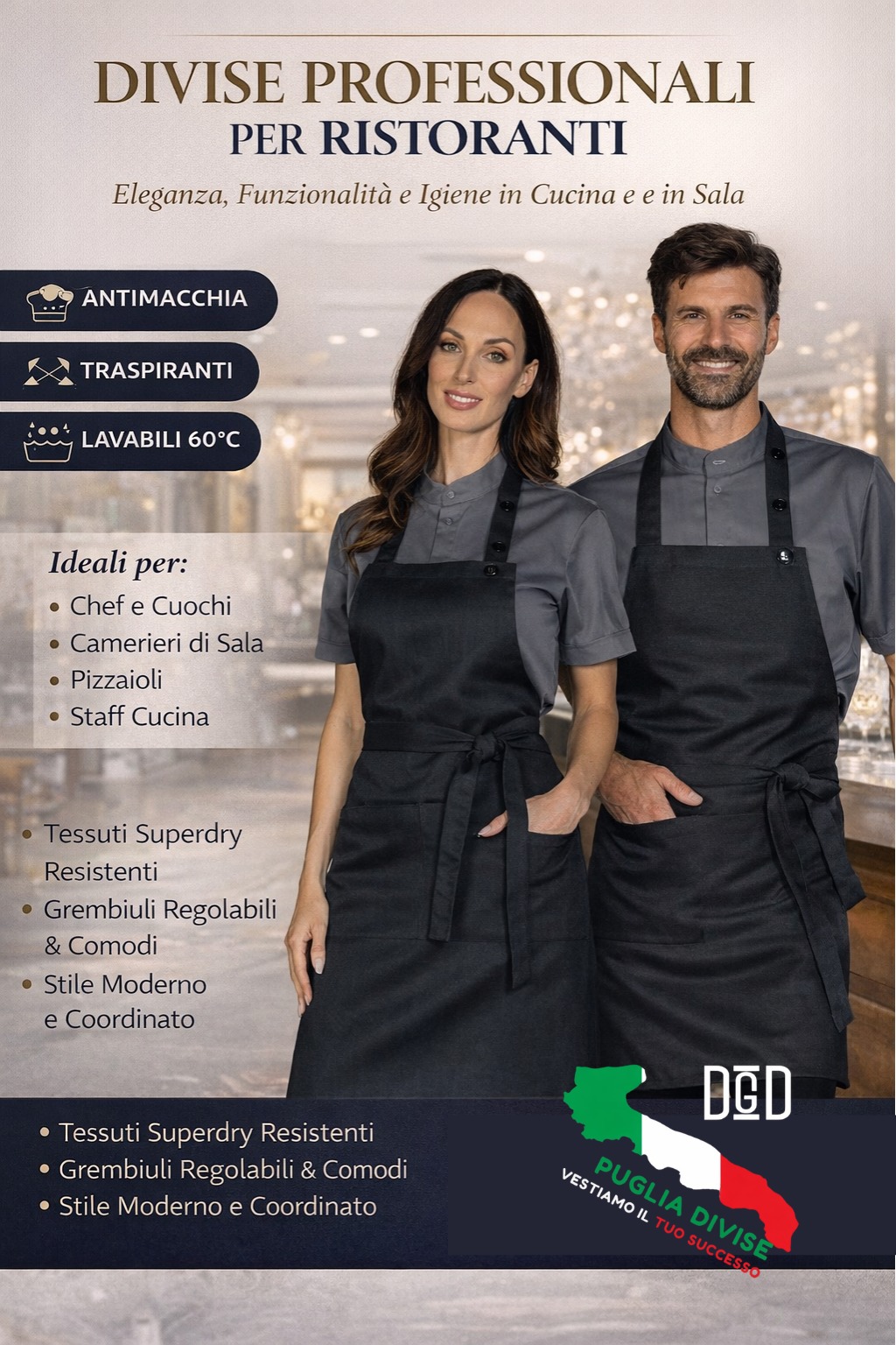Puglia Divise, con una solida esperienza nel settore delle divise professionali e da lavoro a Bari, rappresenta un punto di riferimento. Grazie a partnership di prestigio internazionale con marchi quali Isacco e Payper, garantisce ai suoi clienti un livello di qualità, professionalità ed affidabilità incomparabile nel settore delle divise. L’azienda comprende l’importanza di una divisa come biglietto da visita di un brand di successo, ecco perché si impegna a fornire soluzioni personalizzate e di alta qualità. Se sei alla ricerca di divise professionali e da lavoro a Bari di alta qualità, affidati a Puglia Divise. Scegli la qualità, scegli l’eccellenza – scegli Puglia Divise per rappresentare al meglio il tuo brand.